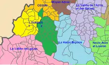 - à l'ouest par la vallée du gave de Pau, le massif du Pic du Jer et par la ville de Lourdes ;