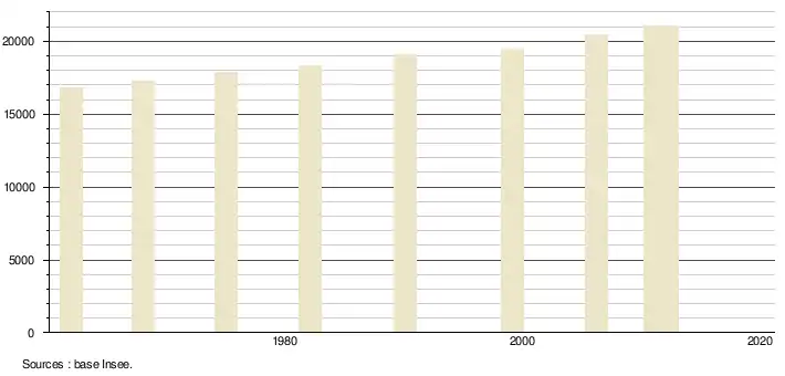 - Population municipale légale en vigueur au 1er janvier 2024, millésimée 2021, définie dans les limites territoriales en vigueur au 1er janvier 2023, date de référence statistique : 1er janvier 2021.