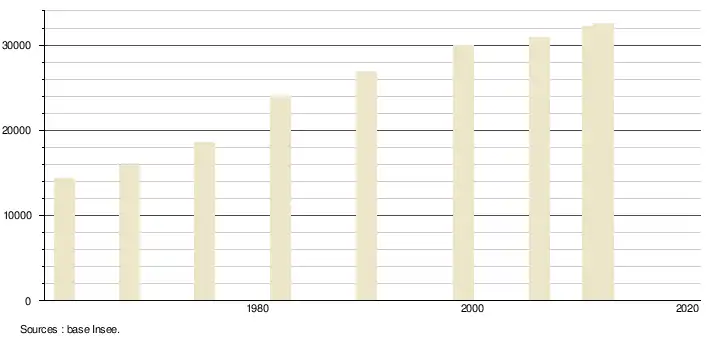 - Population municipale légale en vigueur au 1er janvier 2024, millésimée 2021, définie dans les limites territoriales en vigueur au 1er janvier 2023, date de référence statistique : 1er janvier 2021.