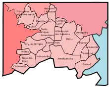 À la suite de la fusion au d'Anserville et de Fosseuse avec Bornel pour former une commune nouvelle[23], le canton comprend désormais 14 communes.