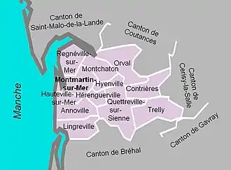 Les anciennes communes suivantes étaient incluses dans le canton de Montmartin-sur-Mer[6] :