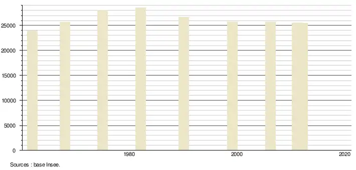 - Population municipale légale en vigueur au 1er janvier 2024, millésimée 2021, définie dans les limites territoriales en vigueur au 1er janvier 2023, date de référence statistique : 1er janvier 2021.