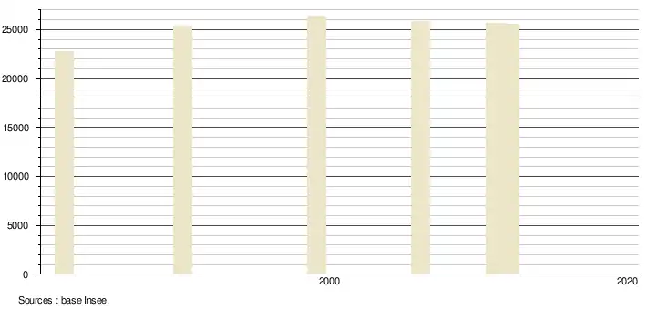 - Population municipale légale en vigueur au 1er janvier 2024, millésimée 2021, définie dans les limites territoriales en vigueur au 1er janvier 2023, date de référence statistique : 1er janvier 2021.