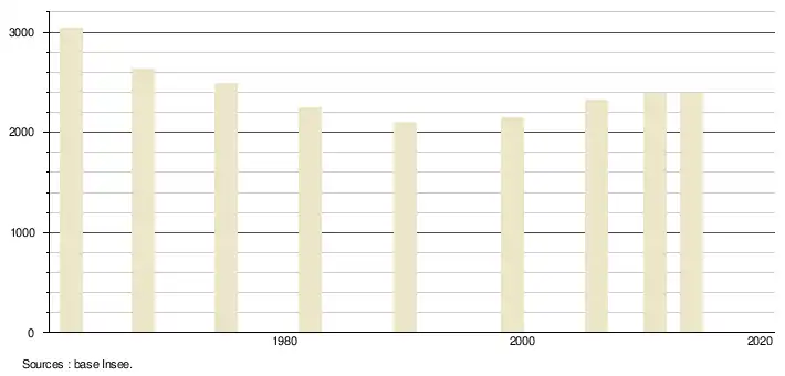 - Population municipale légale en vigueur au 1er janvier 2024, millésimée 2021, définie dans les limites territoriales en vigueur au 1er janvier 2023, date de référence statistique : 1er janvier 2021.