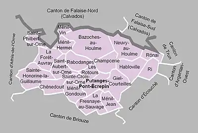 Les anciennes communes suivantes étaient incluses dans le canton de Putanges-Pont-Écrepin[8] :