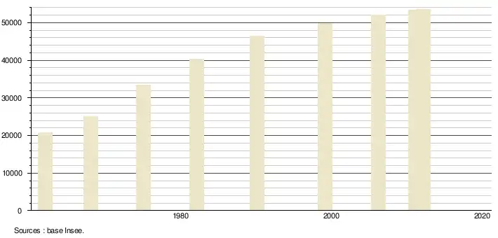 - Population municipale légale en vigueur au 1er janvier 2024, millésimée 2021, définie dans les limites territoriales en vigueur au 1er janvier 2023, date de référence statistique : 1er janvier 2021.