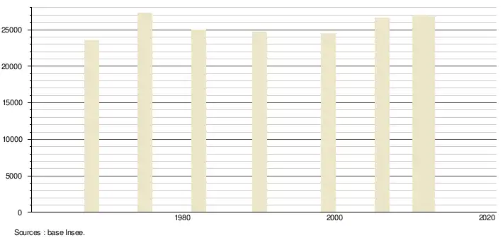 - Population municipale légale en vigueur au 1er janvier 2024, millésimée 2021, définie dans les limites territoriales en vigueur au 1er janvier 2023, date de référence statistique : 1er janvier 2021.