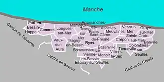 Les anciennes communes suivantes étaient incluses dans le canton de Ryes[13] :