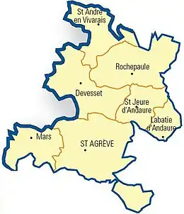 - (fr) Plan du canton de Saint-Agrève sur Mapquest