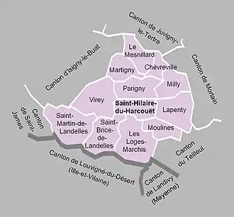À la suite du redécoupage des cantons pour 2015, toutes les communes sont à nouveau rattachées au canton de Saint-Hilaire-du-Harcouët auquel s'ajoutent les douze communes du canton de Saint-James et trois communes du canton du Teilleul.