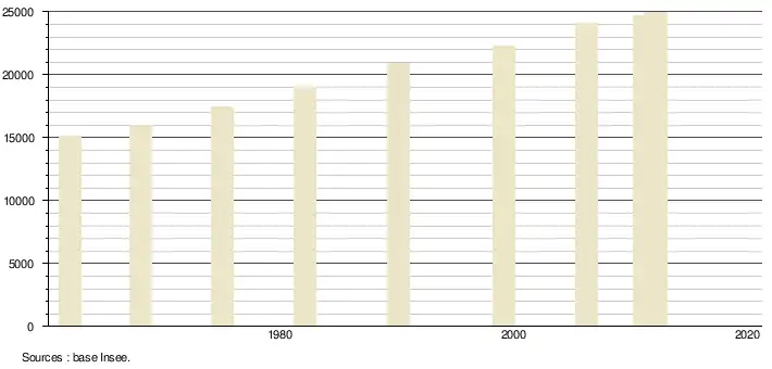 - Population municipale légale en vigueur au 1er janvier 2024, millésimée 2021, définie dans les limites territoriales en vigueur au 1er janvier 2023, date de référence statistique : 1er janvier 2021.