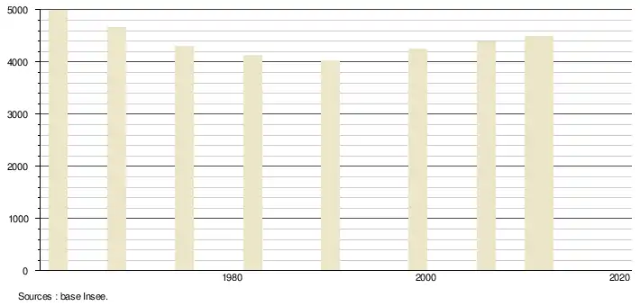 Évolution 1861 - 1962 = - 60 % ; Évolution 1900 - 2009 = - 45,7 %; Évolution 1990 - 2009 = + 11,8 %