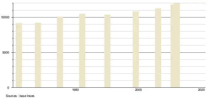 - Population municipale légale en vigueur au 1er janvier 2024, millésimée 2021, définie dans les limites territoriales en vigueur au 1er janvier 2023, date de référence statistique : 1er janvier 2021.