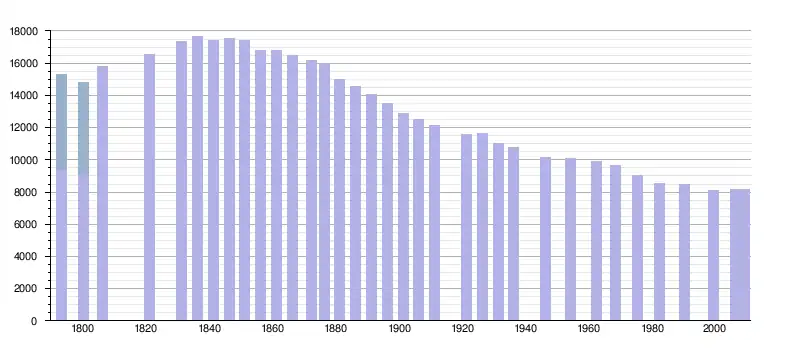 - Addition de la population des communes présentes dans le canton à la date du recensement. La période concernée se situe entre 1793 et 1954. À partir du recensement de 1962, les chiffres proviennent de l'INSEE.