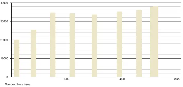 - Population municipale légale en vigueur au 1er janvier 2024, millésimée 2021, définie dans les limites territoriales en vigueur au 1er janvier 2023, date de référence statistique : 1er janvier 2021.