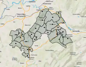 Depuis 2015, le canton de la Roche-sur-Foron regroupe 27 communes entières[8].