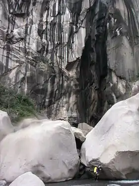 Pratiquant dans le canyon de Fleurs Jaunes.