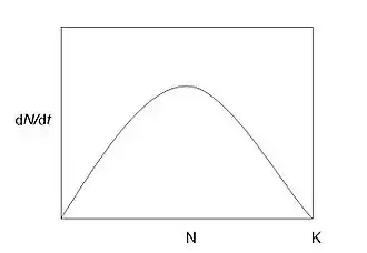 En écologie fondamentale, la capacité porteuse est généralement définie par la constante dans l'équation différentielle suivante :