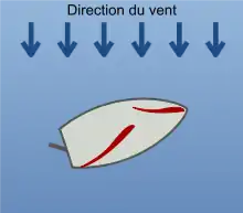 Le voilier va alors s'arrêter et osciller entre le près et le travers. Si la grand-voile prend du vent, il va avancer un petit peu, lofer et être arrêté par la voile gonflée à contre, ce qui le fait reculer, abattre, la grand-voile reprend un peu de vent… Pour trouver l'équilibre propre au voilier, on peut tenter des réglages différents avec la barre et l'écoute de grand voile.
