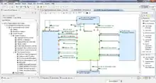 - La zone « diagramme », qui présente une vue graphique d'un extrait du modèle et permet d'éditer le modèle en termes de création, modification, suppression d'éléments, mais aussi de modification de l'organisation ou l'apparence d'éléments dans le diagramme ;