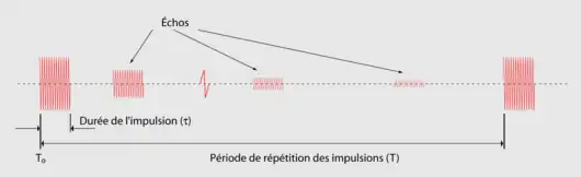 Pour obtenir un écho utilisable la plupart des systèmes radar émettent des impulsions de façon continue et la fréquence de répétition des impulsions (« PRF » pour Pulse repetition frequency) est fonction de l'usage que l'on fait du système. On définit de manière équivalente l'intervalle de répétition des impulsions ("PRI" pour Pulse Repetition Interval) comme étant l'inverse de . L'écho reçu de la cible peut être affiché directement sur un écran ou être intégré par un système de traitement du signal à chaque impulsion et être rendu ainsi plus lisible. Plus est élevée, plus l'image de la cible sera visible. Cependant, lorsqu'on augmente , on diminue la portée du radar. Les fabricants de radars essaient donc d'utiliser la fréquence la plus élevée possible compte tenu des facteurs limitants.