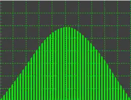 Le schéma ci-contre montre les caractéristiques du signal transmis par rapport au temps. Notons que dans ce schéma, ainsi que dans tous ceux de l'article, l'axe des abscisses (du temps) est dilaté par mesure de clarté.