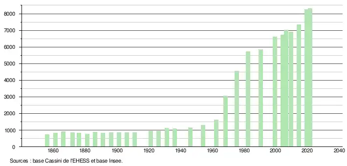 Ainsi commencent à se développer les lotissements de maisons individuelles et la construction de quelques immeubles collectifs qui font passer la population de 1149 habitants en 1946 à près de 8000 aujourd'hui.