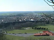 L'occupation des sols de la commune, telle qu'elle ressort de la base de données européenne d’occupation biophysique des sols Corine Land Cover (CLC), est marquée par l'importance des territoires agricoles (64,2 % en 2018), néanmoins en diminution par rapport à 1990 (79,1 %). La répartition détaillée en 2018 est la suivante : terres arables (43,6 %), zones urbanisées (14,3 %), zones agricoles hétérogènes (11,6 %), prairies (9 %), forêts (8 %), eaux continentales[Note 7] (7,1 %), zones industrielles ou commerciales et réseaux de communication (4,8 %), mines, décharges et chantiers (1,6 %)[29]. L'évolution de l’occupation des sols de la commune et de ses infrastructures peut être observée sur les différentes représentations cartographiques du territoire : la carte de Cassini (XVIIIe siècle), la carte d'état-major (1820-1866) et les cartes ou photos aériennes de l'IGN pour la période actuelle (1950 à aujourd'hui)[Carte 1].