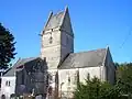 - L'église Saint-Hilaire dont le clocher-tour du XIIe siècle est classé au titre des monuments historiques depuis le , le reste de l'édifice étant inscrit[42]. La nef est des XVIIIe et XIXe siècles, le chœur à deux travées gothiques du XIVe et une travée romane supportant le clocher-tour du XIIe et le portail du XIIIe.