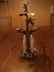 Le carillon d'anges est une forme de décoration de Noël très populaire en Europe et en Amérique du Nord[1]. Il a les mêmes origines que la pyramide de Noël, qui fonctionne sur le même principe. Il diffère de cette dernière en étant produit en masse, en métal et avec des clochettes, tandis que la pyramide de Noël est généralement fabriquée à partir de bois et n'a pas forcément de cloches.