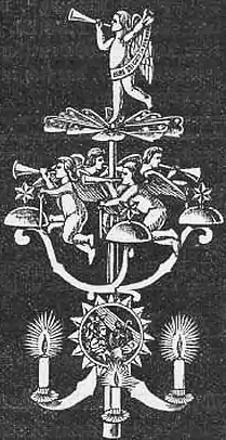 Un carillon d'anges a une ou plusieurs bougies placées à sa base qui fournissent de la chaleur et font tourner une hélice fixée en haut du mat. Cette hélice entraîne une série d'angelots trompettistes qui « volent » en cercle, frappant les clochettes sous eux avec des tiges. En plus de cela, on retrouve généralement d'autres motifs décoratifs, tels que l'étoile de Bethléem ou une crèche.