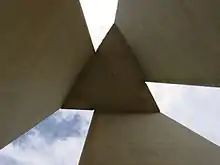 La salle est faite de plaques de béton blanc reposant sur un plancher de pavés hexagonaux. Le carillon est illuminé la nuit.