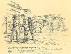 Croquis de voyages en Norvège décrit des touristes étrangers visitant la Norvège[2]. Les pages qui suivent proviennent d'une édition de 1945.