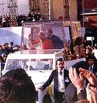 Le cardinal Martini reçoit la visite du pape Jean-Paul II à Milan en 1984.