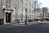 À l'extrémité ouest de la résidence se trouve Carlton Gardens, où le général de Gaulle installe le QG des Forces françaises libres en 1940[1]. Une plaque commémorative en témoigne au no 4. De l'autre côté de la place se trouve une statue du général inaugurée par la reine mère le [note 3] avec la présence entre autres de Jacques Chirac ainsi que de Philippe de Gaulle.