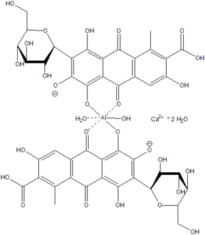 Le pigment carmin, complexe d'acide carminique et d'aluminium, s'utilise comme colorant alimentaire sous le numéro E120.