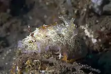 Cette espèce mesure de 15 à 40 mm de long. Le corps est ovale et plat avec la surface dorsale couverte de gros tubercules effilés sans spicules dépassant des tubercules. La coloration de l'animal est complexe et caractéristique. La couleur de fond de la surface dorsale est brun roux translucide avec des taches marron foncé et blanches. Un motif ovale de tubercules ressemblant à des œufs au plat (une tache blanche avec un centre jaune) entoure un groupe médian de tubercules brun foncé. La taille de l'anneau blanc du motif ressemblant à un œuf au plat se réduit sur les tubercules les plus proches du bord. Les tubercules formant les 6 à 8 plus grands motifs d'œufs sur le plat sont chacun entourés de 8 à 10 tubercules blancs plus petits. Quelques tubercules de couleur brun roux sont dispersés sur la surface du dos et sont particulièrement abondants près de son centre. Le dessous du pied et du manteau est mouchetée de brun foncé. Le bord antérieur du pied est bilabié et dentelé. Chaque côté de la tête arbore un long tentacule digitiforme qui est également couvert de mouchetures brunes. Six branches tripennées forment le panache branchial qui est brun foncé avec des taches blanches. L'anus est situé à l'intérieur du cercle branchial. Les rhinophores perfoliés portent environ 13 à 19 lamelles et sont de couleur brun rougeâtre foncé avec des taches blanches[1].