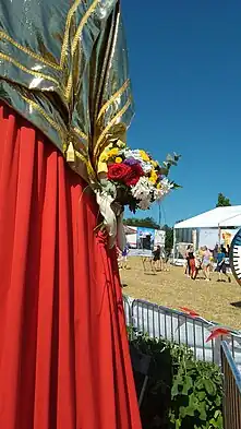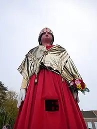 Elle est vêtue d’une robe rouge, d’un voile doré, d’un diadème et a un bouquet de fleurs fraiches lors de chaque sortie. Reuze Maman ne sort qu’une fois par an, à l’occasion du Lundi de Pâques.