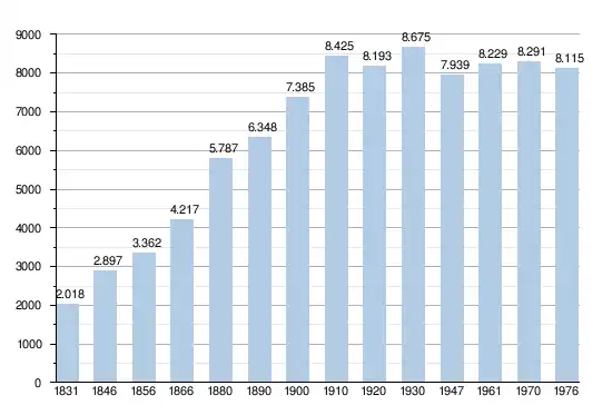 - Sources : INS, Rem. : 1831 jusqu'en 1970 = recensements, 1976 = nombre d'habitants au 31 décembre.
