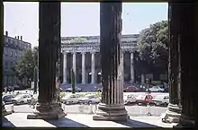 La construction du Carré d'art à l'emplacement d'un ancien grand théâtre néo-classique construit de 1798 à 1800, totalement incendié en octobre 1952 et dont ne subsistait que la façade constituée d'une colonnade néoclassique, est décidée par Jean Bousquet, maire de Nîmes de 1983 à 1995. À la suite d'un concours international d'architecture lancé en 1984, c'est le projet de Norman Foster qui est retenu parmi ceux proposés également par César Pelli, Arata Isozaki, Jean Nouvel, et Frank Gehry[1]. L'architecte britannique fait de nombreuses propositions de façade avec ou sans l'intégration de la colonnade de l'ancien théâtre, le choix du jury se portant sur le projet sans les colonnes qui furent démontées et remontées sur une aire d'autoroute.