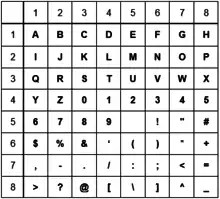 L’une des plus importantes variantes du carré est celle comportant 64 cases — soit 8 lignes et 8 colonnes — pour y inclure lettres, chiffres et autres symboles. Les lettres sont en ordre alphabétique, les chiffres sont en ordre ascendant allant de 0 à 9 et les autres symboles sont en ordre de leur apparition sur la table ASCII. Avec cette variante, il est désormais possible de chiffrer plusieurs messages contenant des adresses courriel, des dates de différents formats, des symboles spéciaux, des phrases avec espaces, etc. Cette variante, tout comme celle qui ajoute les chiffres, permet de séparer les lettres i et j pour éliminer la confusion lors du déchiffrement du message[7].