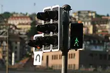 - Le feu vert indique une possibilité de passage, il ne donne cependant pas la priorité. En particulier si un véhicule tourne à gauche, il croisera le chemin des véhicules venant d'en face, qui auront le feu vert en même temps. De plus les piétons et les véhicules d'urgence sont légalement prioritaires.