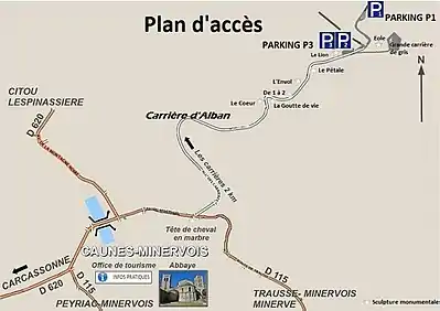 La carrière est située sur la commune de Caunes-Minervois, dans le département français de l'Aude. On l'atteint par l'allée des carrières, à deux kilomètres au nord du village .