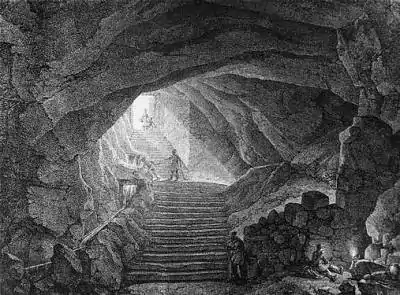 - soit une organisation en chambres d'une dizaine de mètres de diamètre et de 3 à 4 m de hauteur (aux carrières des Montalets, niveaux bas) (48° 49′ 03″ N, 2° 14′ 32″ E).