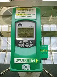 Note : les professionnels de santé se sont également vu attribuer une carte à puce nominative, dont l'utilisation est théoriquement limitée à une seule personne, et qui doit être utilisée en même temps que la carte Vitale du patient pour pouvoir transmettre les informations de facturation à la Sécurité sociale.