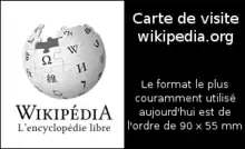 Le format traditionnel des cartes de visite est 126 × 80 mm, appelé « format 30 » ou « format postal ». Le format le plus couramment utilisé aujourd'hui est de l'ordre de 85 × 55 mm. Les cartes bancaires ont adopté un format de 85,6 × 53,98 mm[8], peu différent du format des cartes de visite. Le format des cartes de visite nord-américaines diffère légèrement en raison de l'utilisation des mesures impériales. Il s'établit à 3,5 × 2 pouces (ou 89 × 51 mm).