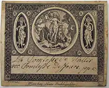 - Joullain, tableaux et estampes, quai de la Mégisserie, à la Ville de Rome, Paris, 1780, paysage, 50 × 80 mm.