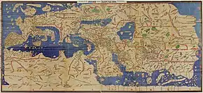 À la fin du XIIIe siècle, les portulans apparaissent : ils représentent les ports de commerce, les amers (objets fixes et visibles servant de point de repère en mer ou sur la côte), les îles et les abris. Ces cartes, ancêtres des cartes marines, comportaient un réseau de lignes correspondant aux divisions de la rose des vents qui permettaient aux navigateurs d’évaluer les caps à la boussole. Issues et destinées à la navigation[4], les portulans ne détaillent pas l'intérieur des terres.