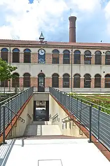 Au nord, se trouve le magasin à munitions, dit "La gare", formé de quatre longues travées communicantes réunies au sud par un quai surmonté d’un auvent, d’où les marchandises pouvaient être livrées et expédiées directement par une voie ferrée qui rejoignait la ligne Valence-Grenoble (et accédait à peu de distance à la ligne Paris-Marseille). Une voie étroite de type Decauville desservait ensuite l’usine elle-même. À côté de la gare, un grand bassin, alimenté par des sources, envoie à l’usine l’eau nécessaire par une canalisation à ciel ouvert, sorte de petit canal.