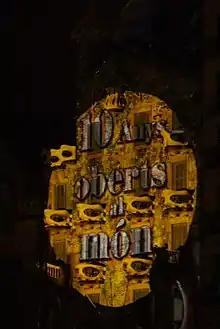 La façade principale donne sur le Passeig de Gràcia et est divisée en trois parties différentes harmonieusement intégrées[53].